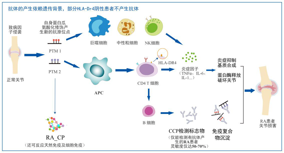 但是,在臨床實踐過程中發(fā)現(xiàn)CCP和RF都不能有效地篩查出陽性的RA患者,國際指南推薦的CCP雖有良好的特異性,但約有30-40%的RA患者不能被檢出,現(xiàn)有的臨床檢測項目指標的靈敏度不夠,假陰性率很高,導致臨床漏診,貽誤病情。
