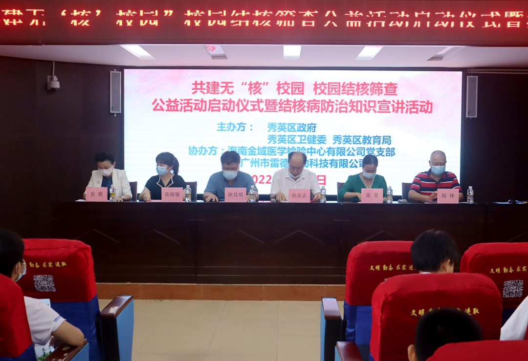 為進(jìn)一步做好學(xué)校結(jié)核病篩查工作,避免結(jié)核病在學(xué)校出現(xiàn)群體性傳播事件,切實(shí)保障廣大師生的身體健康,5月31日上午,以共建無(wú)“核”校園為主題的校園結(jié)核篩查公益活動(dòng)啟動(dòng)儀式暨結(jié)核病防治知識(shí)宣講活動(dòng)在??谑械谑闹袑W(xué)順利舉行。