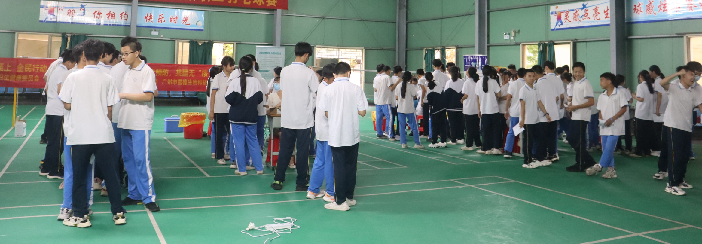 下午三點(diǎn)左右,結(jié)核篩查活動(dòng)正式開(kāi)始,??谑械谑闹袑W(xué)初二年級(jí)600余名學(xué)生有序進(jìn)行了結(jié)核篩查。