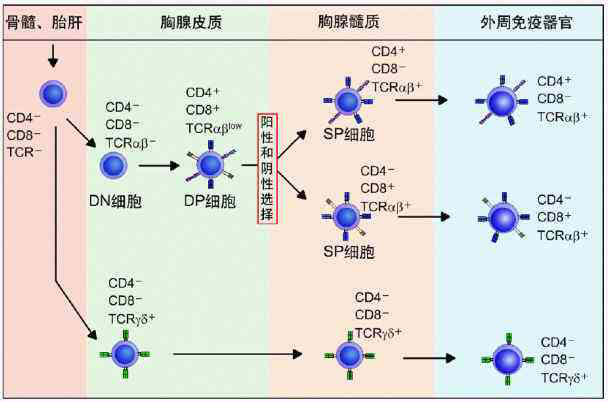 圖2 T細胞分化發(fā)育過程(圖來源網(wǎng)絡)