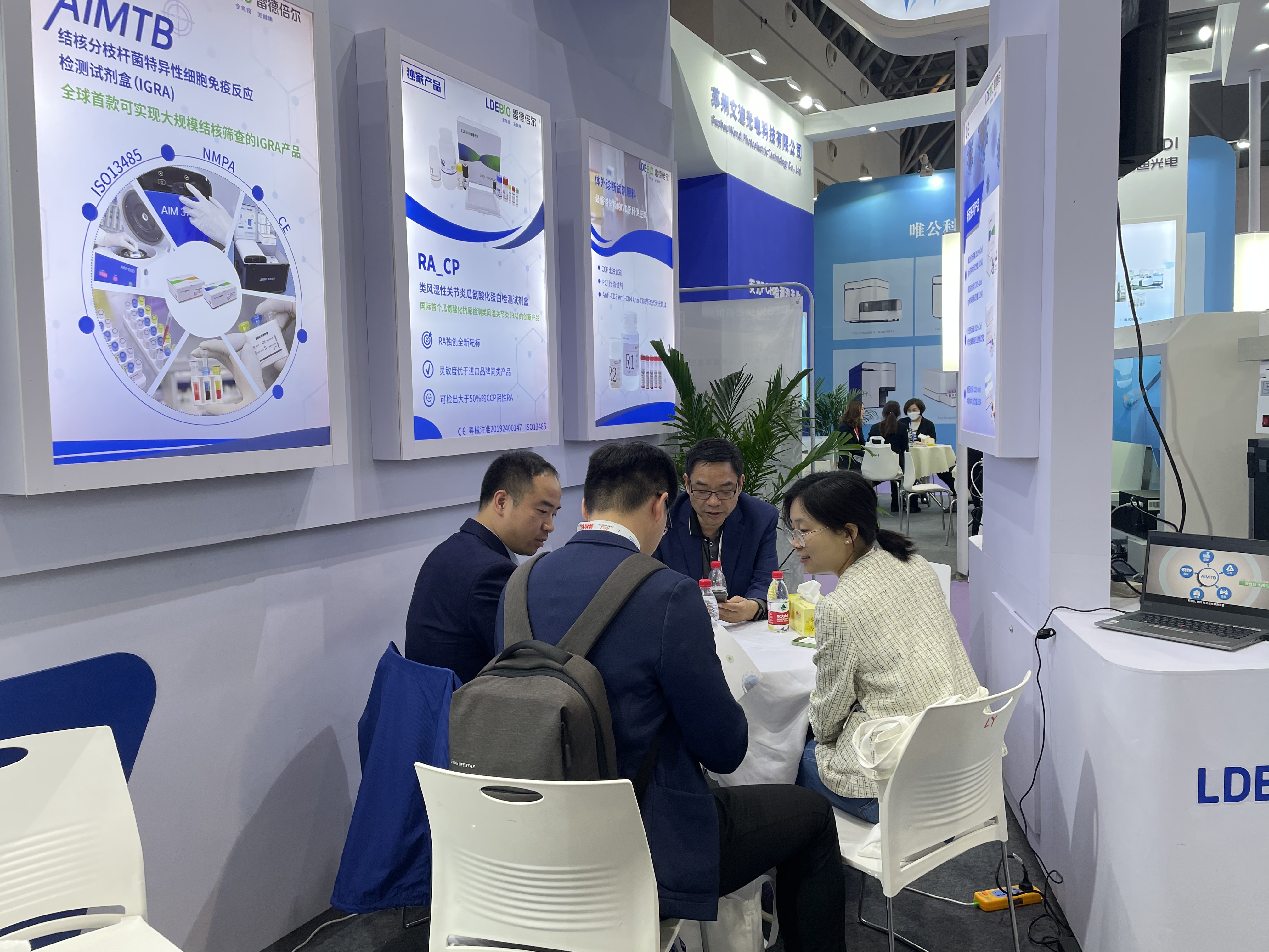 會(huì)中,各來(lái)賓紛紛駐足我司展臺(tái),與我司研發(fā)專(zhuān)家進(jìn)行產(chǎn)品知識(shí)與應(yīng)用的交流,全國(guó)首個(gè)可移動(dòng)高通量結(jié)核感染篩查的產(chǎn)品-AIMTB受到與會(huì)來(lái)賓的一致青睞。2021年全國(guó)兩會(huì),十三屆全國(guó)政協(xié)委員、教科衛(wèi)體委員會(huì)副主任、中國(guó)藥學(xué)會(huì)理事長(zhǎng)孫咸澤在會(huì)議中提案:加強(qiáng)結(jié)核病防治。要達(dá)到此目標(biāo),就要對(duì)高風(fēng)險(xiǎn)人群,甚至全人群進(jìn)行結(jié)核篩查,對(duì)高風(fēng)險(xiǎn)人群進(jìn)行預(yù)防性治療,這也是中國(guó)醫(yī)學(xué)科學(xué)院病原生物學(xué)研究所金奇博士和高磊博士提出的“關(guān)口前移”。雷德結(jié)核感染檢測(cè)系統(tǒng)-AIMTB核心原料自研自產(chǎn),操作簡(jiǎn)單,可進(jìn)行活動(dòng)性結(jié)核的輔助診斷及潛伏結(jié)核感染篩查,適用于醫(yī)療機(jī)構(gòu)及體檢篩查市場(chǎng)的高通量需求,對(duì)于快速加強(qiáng)結(jié)核病防治、加速推進(jìn)預(yù)防性治療具有重要意義。